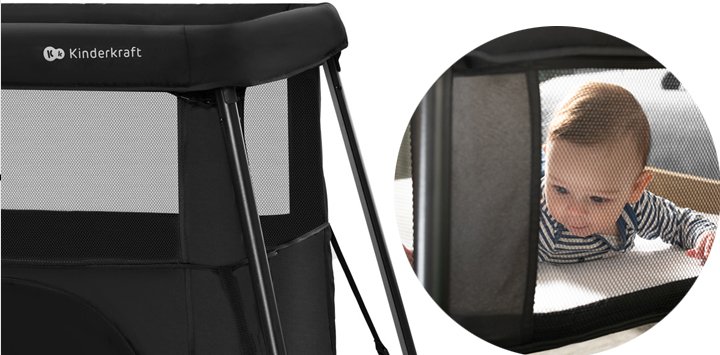 Kinderkraft Cami je postýlka se síťovanými stěnami , které umožňují vašemu dítěti jasně vidět a dýchat čerstvý vzduch, což je zásadní pro zdravý a bezpečný spánek. Absence ostrých hran je další výhodou, ale ne jedinou.