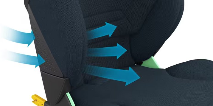 Ventilační systém Clima Flow se skládá z ventilačních panelů, které byly v autosedačce Maxi-Cosi Rodifix PRO 2 i-Size modernizovány, prodyšných materiálů sedadel a pěny. Ty zajišťují, že tepelný komfort vašeho dítěte zůstane neochvějný.